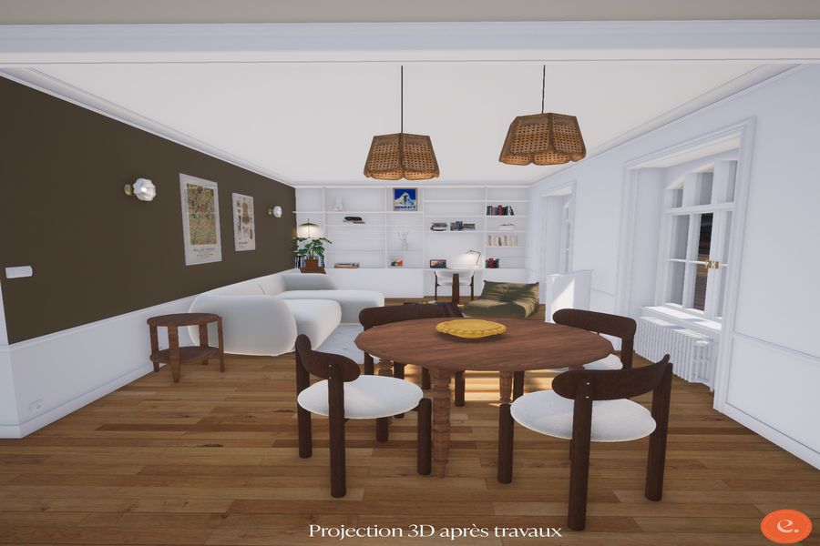 De belles hauteurs sous plafonds, de beaux parquets et boiseries d’origine, de grandes fenêtres, sont à mettre en valeur dans le cadre d’un restauration complète.