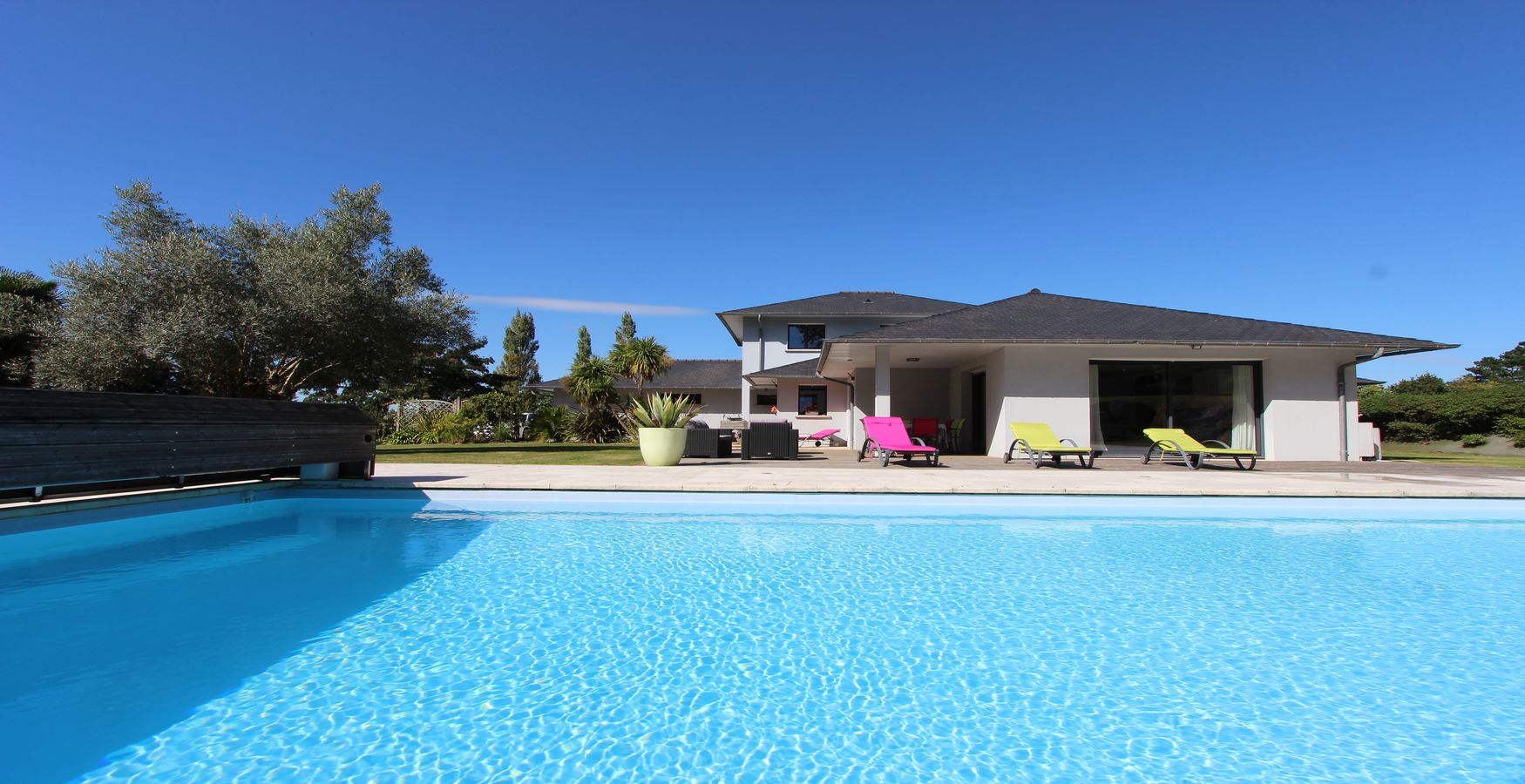 De belle facture, cette propriété contemporaine des plus vastes, se veut dotée d’une très belle présentation et de prestations de gamme. Le confort de ses surfaces, d’une part son beau terrain qui lui permet de se développer sur de beaux volumes de plain-pied, au sein d’un écrin paysagé avec piscine…