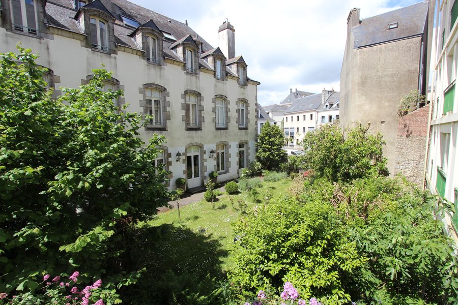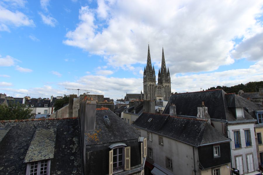 Au coeur de Quimper, dans une rue piétonne, prisée & dynamique, bordant la Cathédrale Saint-Corentin, se situe ce petit immeuble de caractère. En son premier étage, un unique appartement duplex de 84.5 m² habitables se loge avec son entrée indépendante. Au premier niveau, un beau plateau de pièce de vie…