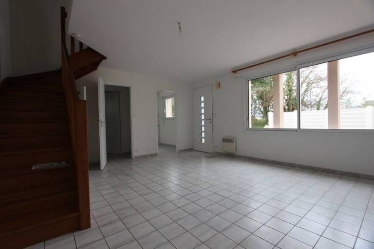 Disponible le 03/01/2026. A louer, dans une longère restaurée en 1994, une maison de type 4 de 69 m² habitables avec une terrasse exposée plein Sud & un grand garage-buanderie. Composée au rez-de-chaussée d’un salon-séjour de 23 m² avec terrasse de 20 m², d’une cuisine aménagée, non équipée, d’une salle…