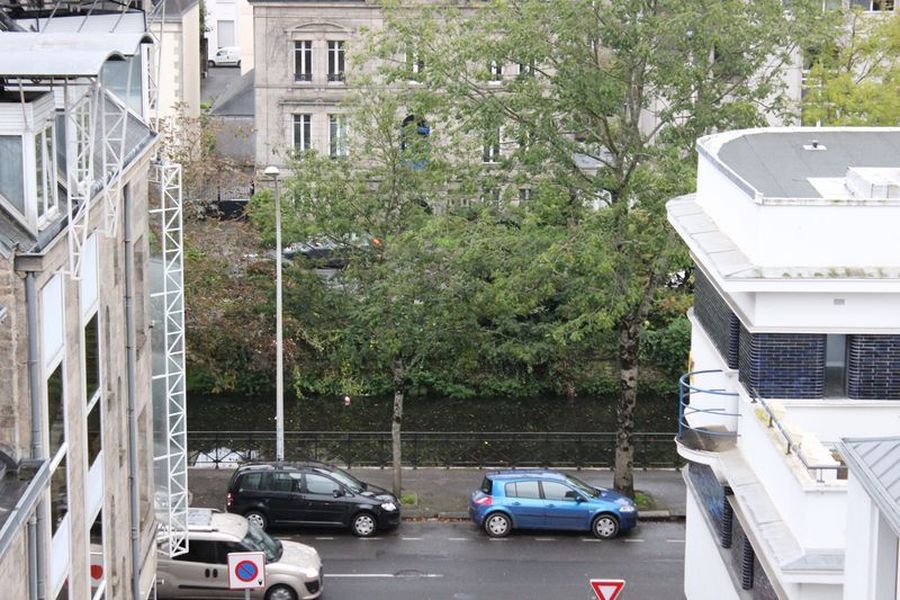 Ce type 2 Bis, situé au troisième et dernier étage d’un immeuble de charme, vous plongera dans une ambiance particulière & cosy, grâce à ces poutres apparentes et sa vue sur l’Odet. Un quartier prisé de par sa situation en centre-ville.