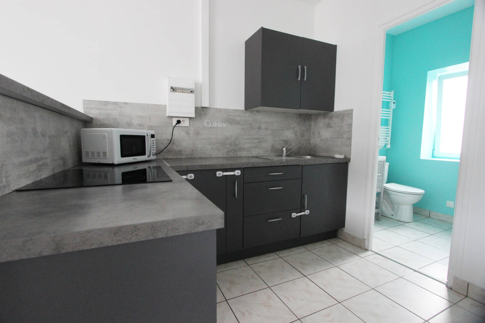 Composé d’un salon-séjour de 28 m² avec cuisine ouverte équipée & aménagée (plaques induction, four), d’une salle d’eau aménagée avec wc et d’une grande chambre.