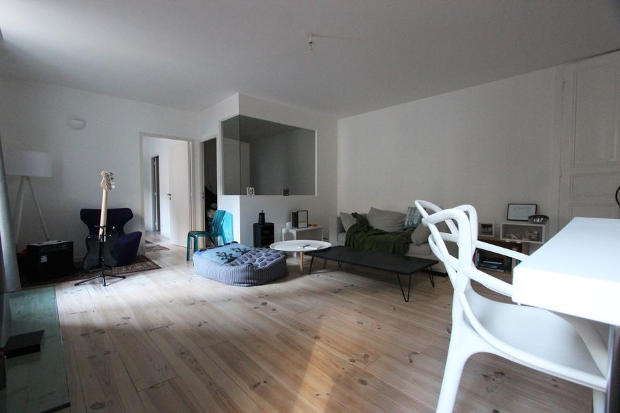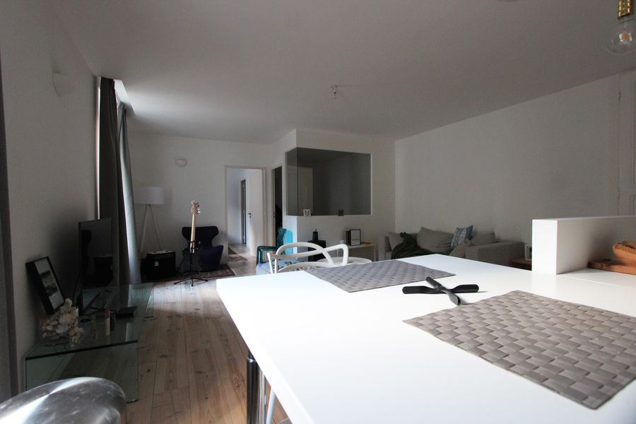 L’entrée dessert un espace de vie de 35 m² avec un salon-séjour & une cuisine agencée dinatoire qui s’ouvre sur l’ensemble.