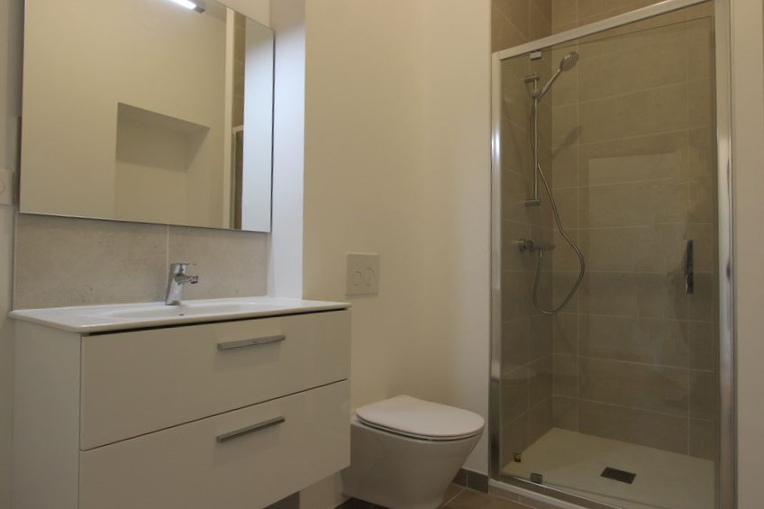 Composé d’une entrée, d’une pièce de vie de 24 m² avec une cuisine aménagée et équipée (plaque, four, hotte) récemment posée et d’une belle salle d’eau avec coin buanderie.
