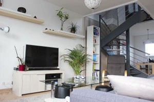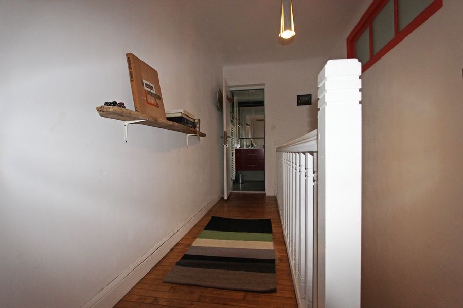 Au premier étage, un bel espace à vivre comprenant une cuisine aménagée & équipée donnant sur une petite terrasse exposée Sud et une salle d’eau avec wc.