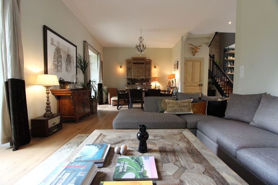 Coté nuit, quatre chambres avec une suite complète en rez-de-chaussée & trois grandes chambres à l’étage qui s’accompagnent d’une salle de bains et d’une salle d’eau moderne.