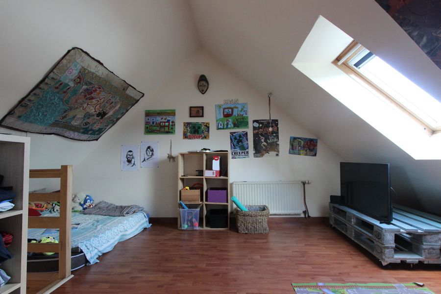 A l’Ă©tage, vous trouverez trois chambres & une salle de bains complète.