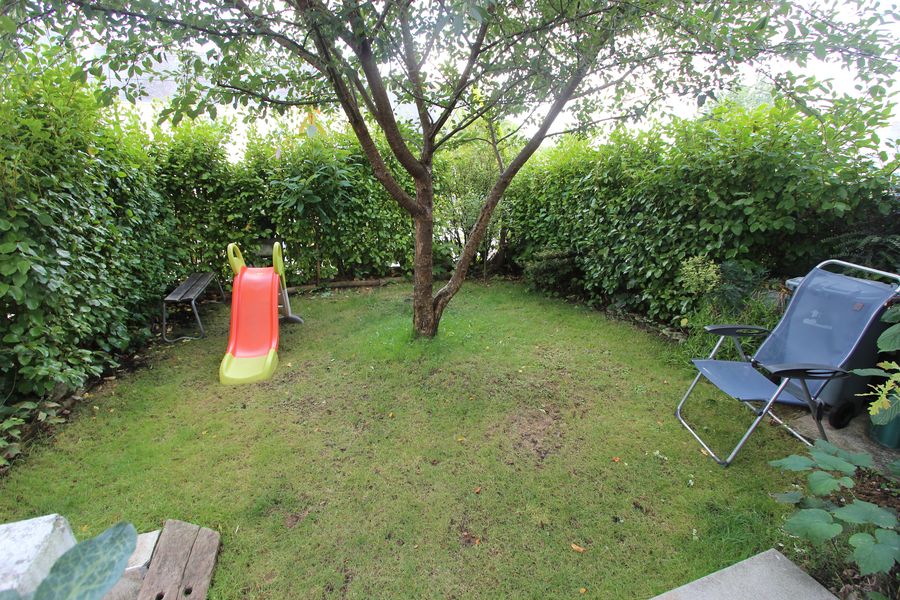 Entre deux jardins intimes, cette maison profite d’un espace de vie en rez-de-jardin avec un coin dinatoire ouvert sur une cuisine agencĂ©e, le tout d’une superficie d’environ 31 m².