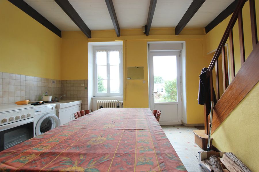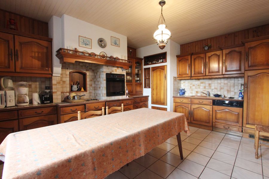 Au rez-de-chaussée, 90 m² répartis principalement en trois grandes pièces à vivre dont une cuisine équipée et une salle à manger avec cheminée.