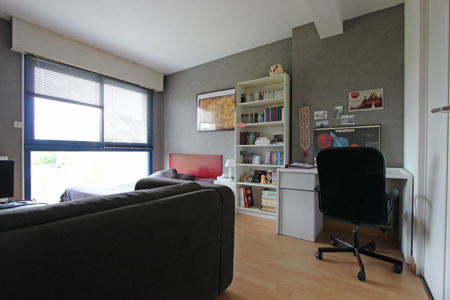 La maison offre au premier niveau son hall d’entrée, qui distribue notamment la partie nuit avec trois chambres, aux belles surfaces et lumineuses avec leur vue dégagée sur le jardin. Du hall, un grand escalier vous mène au niveau inférieur, où se dévoile une magnifique et vaste pièce de vie, au mur de baies vitrées offrant la perspective sur la terrasse et le paysage du jardin clos de murs. Lumineuse, cette pièce d’agrément offre le sentiment d’oublier la situation en cÅ“ur de ville.
