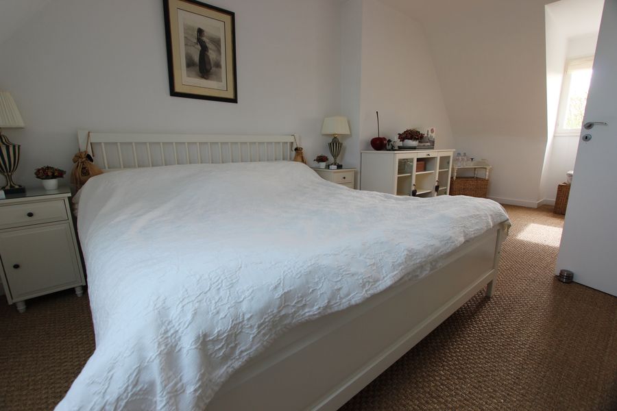 L’Ă©tage se compose de deux chambres spacieuses et d’une salle d’eau.