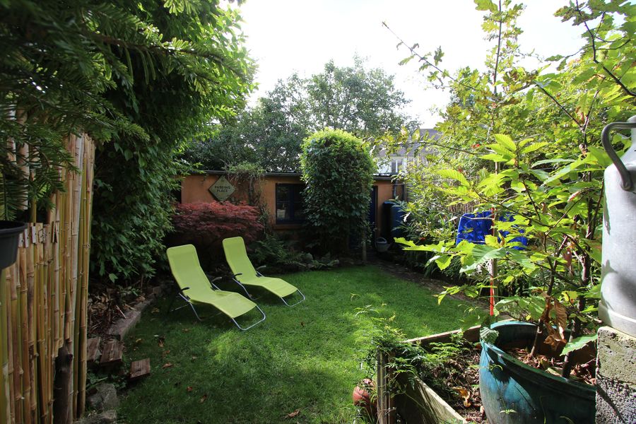 Entre deux jardins intimes, cette maison profite d’un espace de vie en rez-de-jardin avec un coin dinatoire ouvert sur une cuisine agencĂ©e, le tout d’une superficie d’environ 31 m².