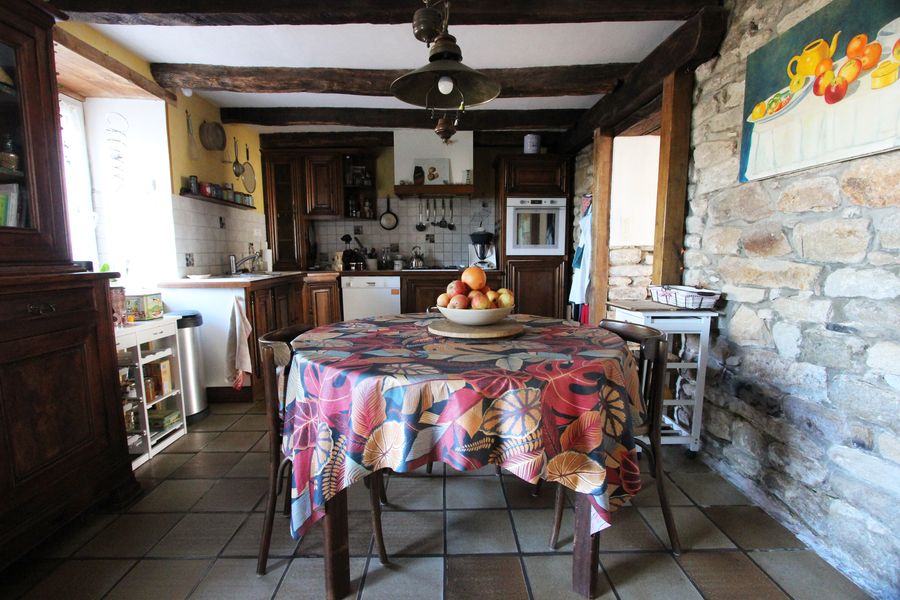 Cette maison familiale en pierres, bĂ©nĂ©ficie d’un espace de vie de presque 70 m² avec un beau salon-sĂ©jour muni d’un insert & une large salle Ă  manger, s’accompagnant d’une cuisine amĂ©nagĂ©e dinatoire Ă  sa proximitĂ© immĂ©diate.