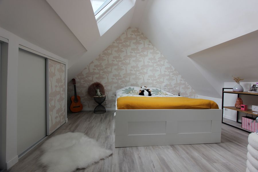Côté nuit au premier étage, vous y trouverez trois belles chambres, une pièce d’eau & au dernier sous mansarde, une chambre avec bureau et salle d’eau à finir, ainsi qu’une salle d’eau au rez-de-chaussée.