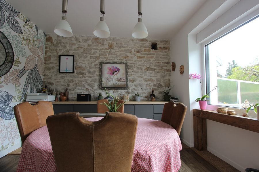 Rénovée en partie récemment, cette jolie maison bénéficie d’un confort moderne, tout en ayant conservé son esprit d’origine avec ses vieux parquets, sa pierre apparente & ses hauteurs sous plafond.