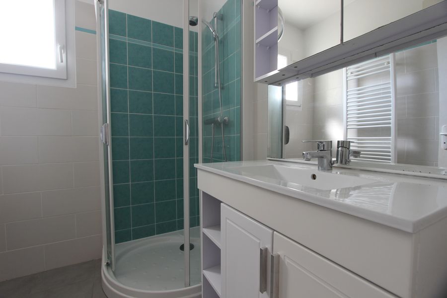 Son hall d’entrée mène à un salon-séjour orienté Ouest de 37 m², la cuisine équipée aménagée se loge à proximité. Chambre & salle d’eau complètent le niveau rez-de-jardin.